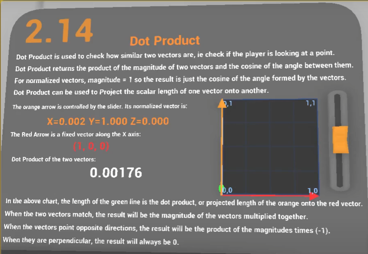 벡터1과 벡터2가 tangential 탄젠트, 즉 음 접선을 내렸을 때 직각이 되는 경우에 그 Dot값은 0이다.